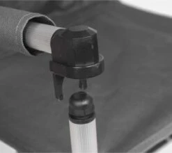 Een lichtgewicht en zeer compacte kinderstoel. Zeer stevig en stabiel en daarnaast hoog genoeg om kinderen aan tafel te zetten. Inclusief riempje wat de kans op vallen sterk vermindert. Beschikt over een lichtgewicht aluminium frame en een comfortabele 600 denier nylon bekleding. Eenvoudig in te klappen en compact mee te nemen (ingeklapt lxbxh): 90x14x16 cm. Zithoogte: 50 cm. Zitdiepte: 37 cm. Zitbreedte: 37 cm. Ruglengte: 46 cm. Maximale belasting: 50 kg.
