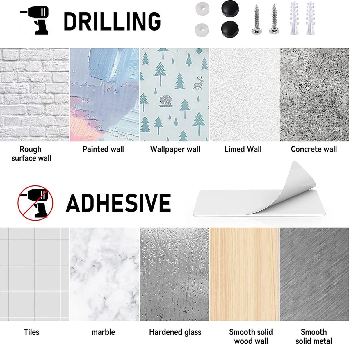 【Zelfklevende installatie】Gewoon de beschermfolie afscheuren, op een glad oppervlak plakken en een paar seconden aandrukken. (het moet een glad oppervlak zijn, zoals keramische tegels, glas, metalen oppervlak enz.