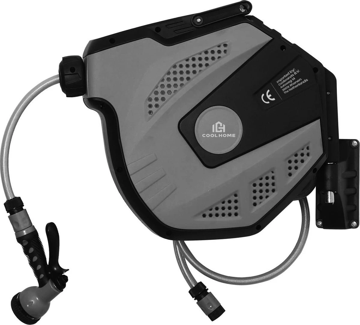 CoolHome Wandslangenbox 15 Meter + 1,5 Meter – Tuinslang Met Haspel- Slangenhouder 180° Draaibaar – Tuinslanghaspel Zwart – Grijs
