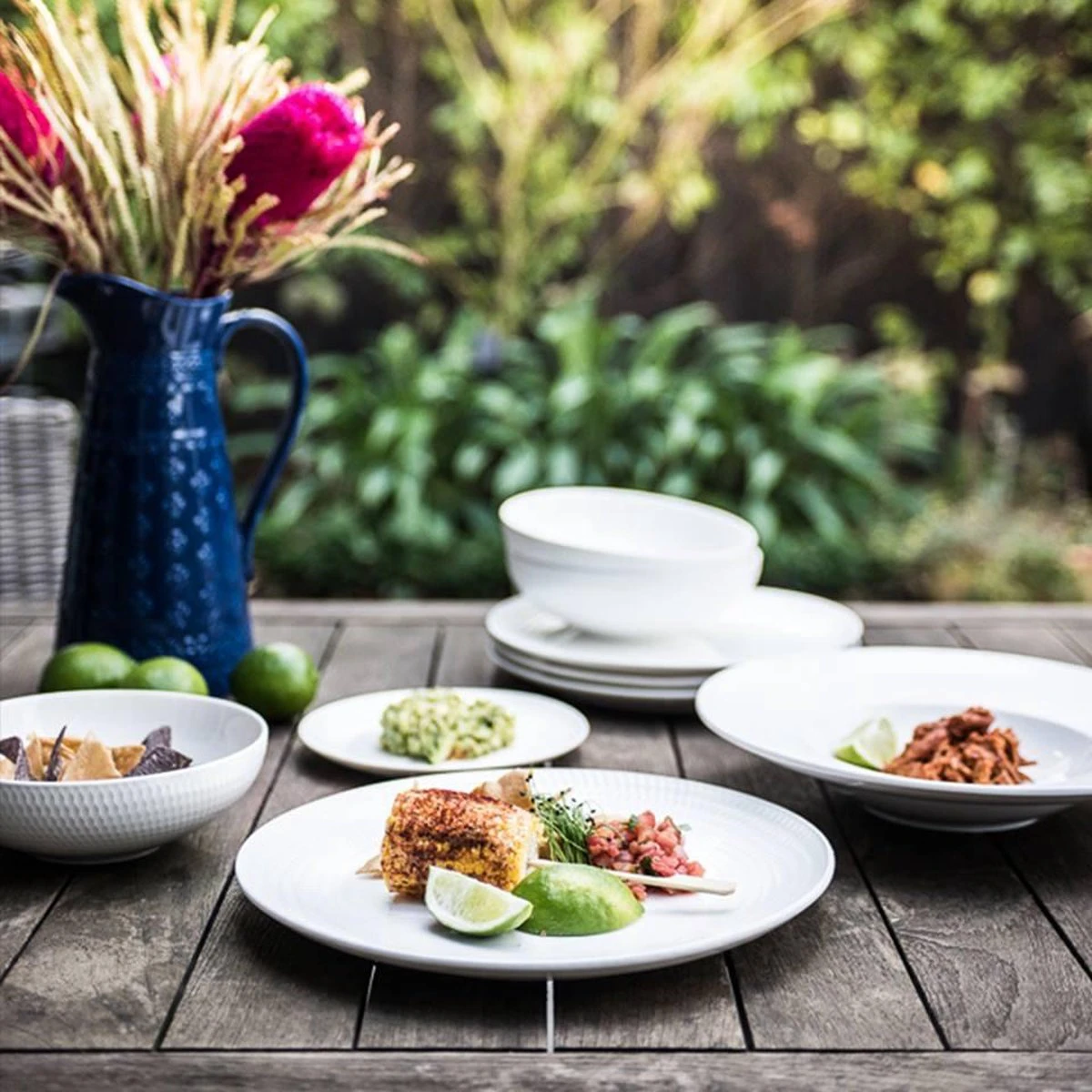 Met een basis wit servies als uitgangspunt kun je door slechts enkele items te vervangen een totaal andere stijl creëren. Maxwell & Williams werkt met drie kwaliteiten:
