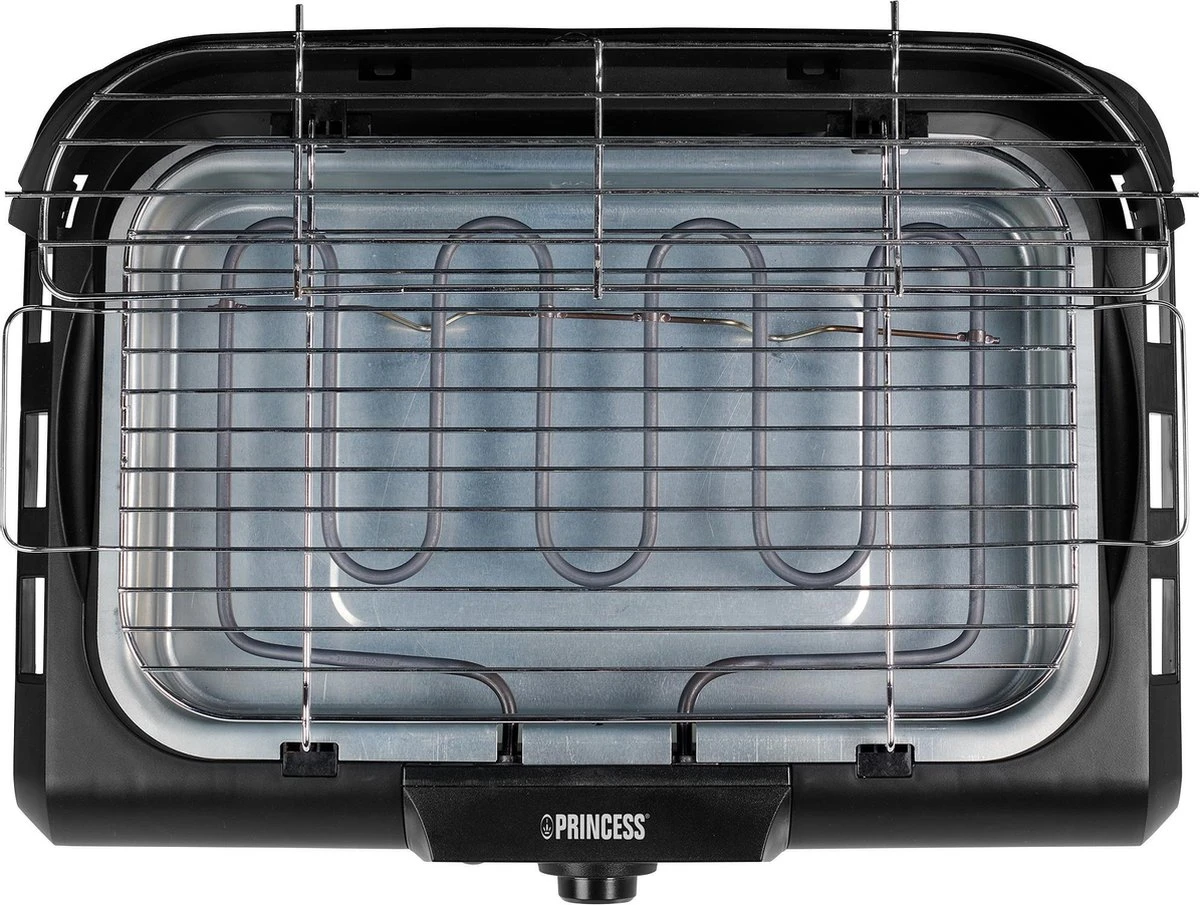Met de Princess 112250 Elektrische BBQ is je zomer compleet. De stabiele en praktische elektrische BBQ op een handige standaard zorgt ervoor dat je overal lekker kunt barbecueën. Door het hoge vermogen van 2200W warmt hij erg snel op en blijft hij warm zodat je lekker je vlees, vis of groenten kunt blijven grillen. De barbecue is voorzien van een windscherm, opbergrek en handige bijzettafels voor al je BBQ-spullen. Wil je buiten eten maar heb je geen zin om naast de BBQ te blijven staan ​​terwijl je vrienden aan tafel zitten te eten? Gebruik de elektrische barbecue als tafelgrill en geniet van een heerlijk diner buiten.